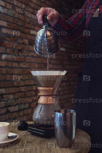 Бариста заваривает кофе