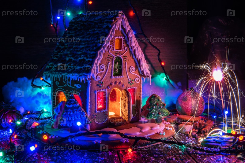 Пряничный дом с огнями