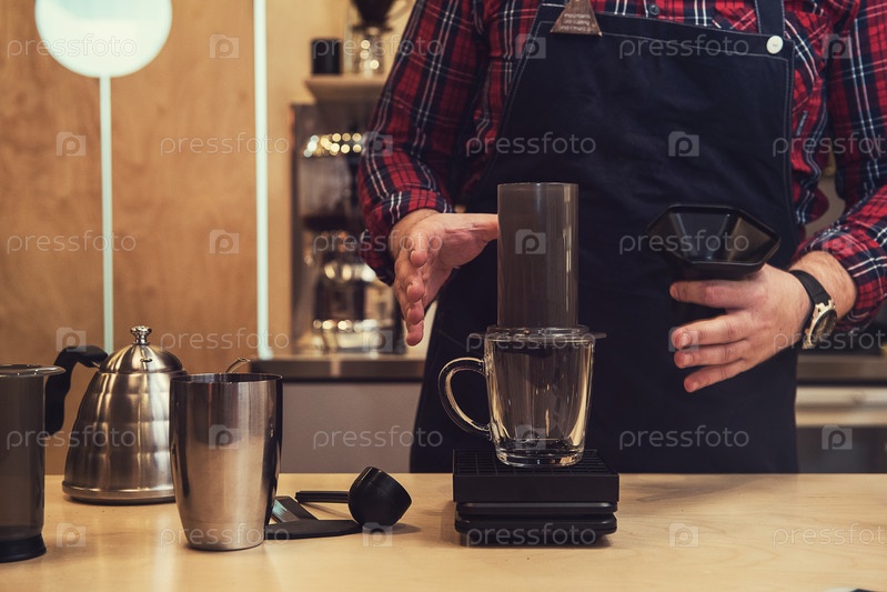 Бариста заваривает кофе