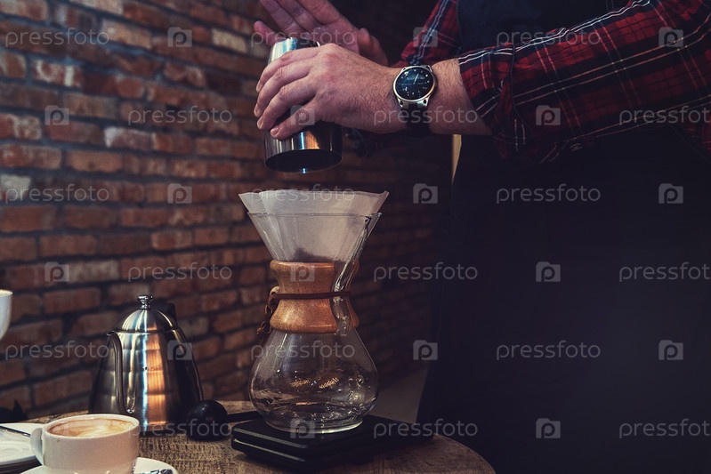 Бариста заваривает кофе