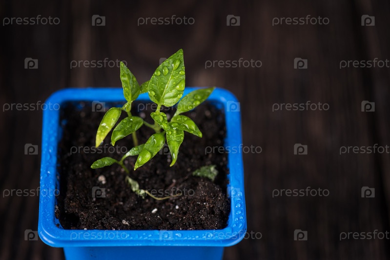 Перец растет в горшке