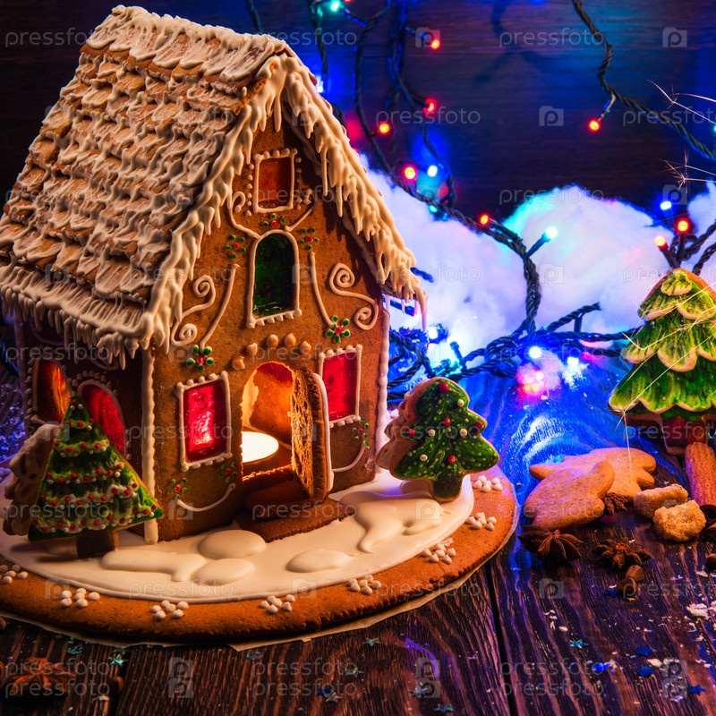 Пряничный дом с огнями