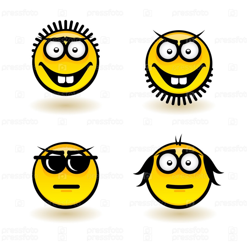 Набор из пяти мультипликационных лиц на белом фоне