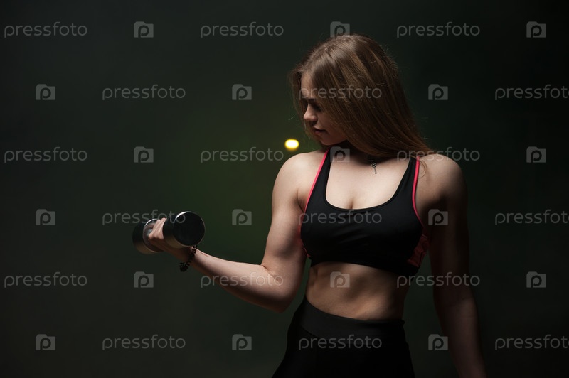 Спортивная молодая женщина с гантелями