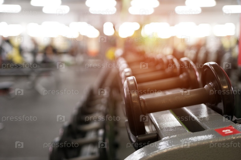 Различные гантели в фитнес-центре