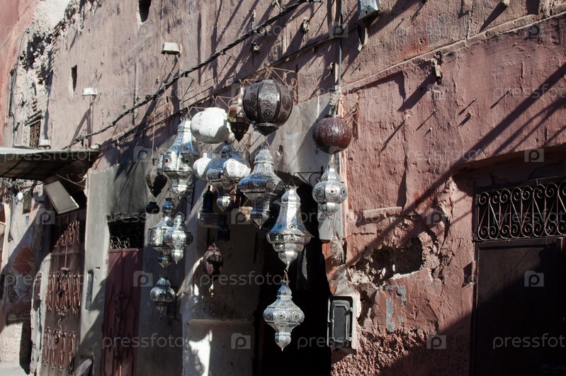 Марокканские металлические лампы на рынке в Марокко