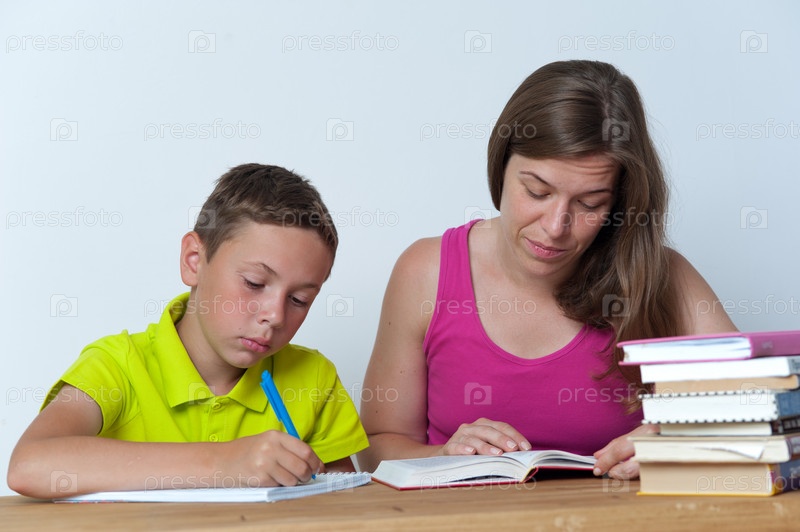 Мать помогает сыну с уроками