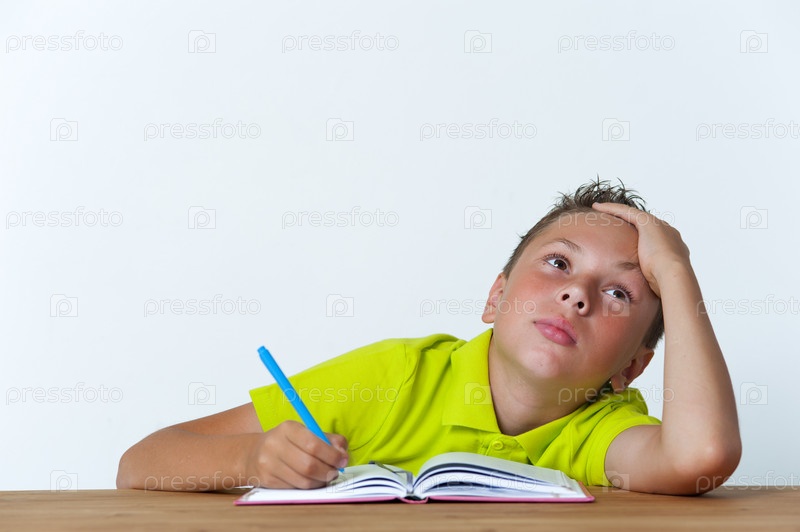 Усталый мальчик с тетрадкой