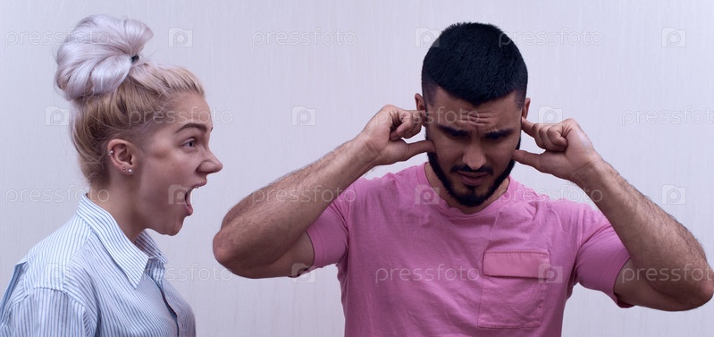 Молодая женщина кричит на бойфренда
