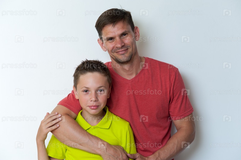 Счастливый отец и сын обнимаются