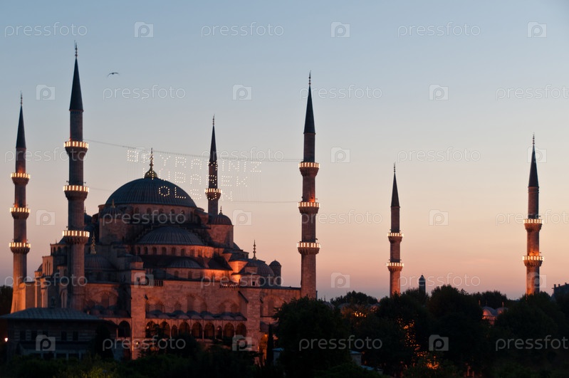 Знаменитая Голубая мечеть в Стамбуле, Турция в большой закат