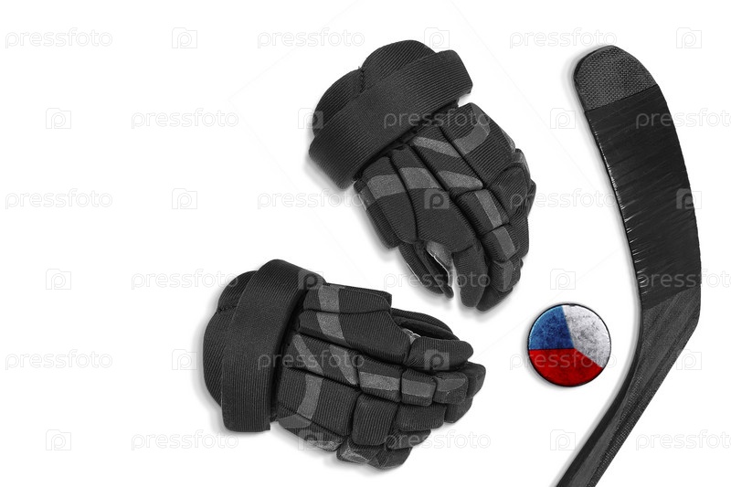 Чешская шайба, перчатки и хоккейная клюшка