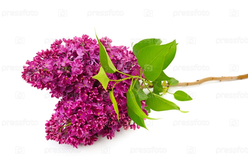 Веточка цветущей сирени на белом фоне
