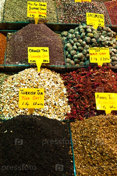Различные виды чая на Египетском рынке (MisirCarsisi) в Стамбуле, Турция
