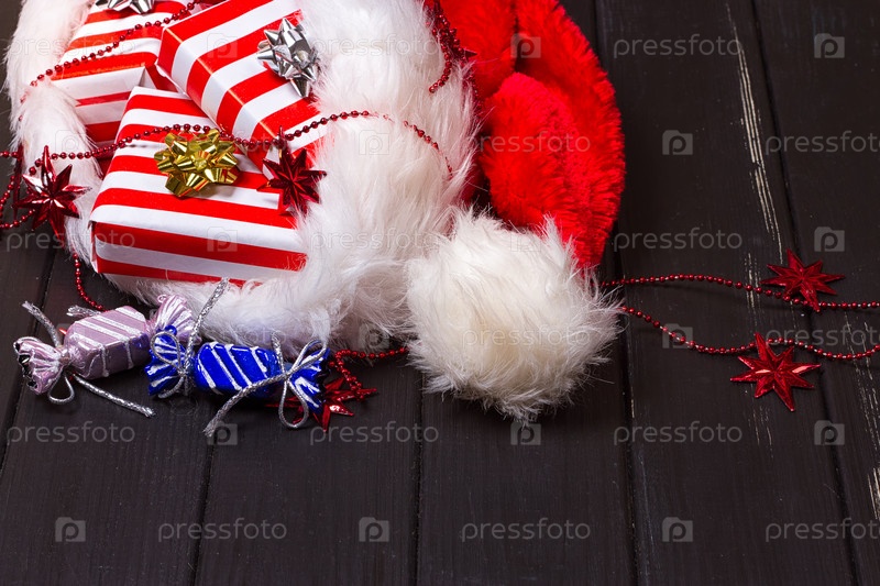 Рождественские подарки в шляпе Санта-Клауса