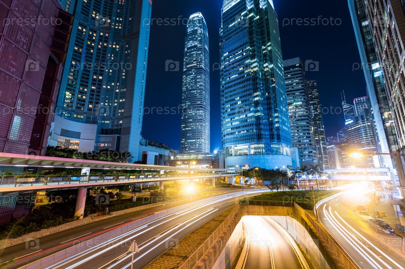 Трафик в Гонконге в ночное время