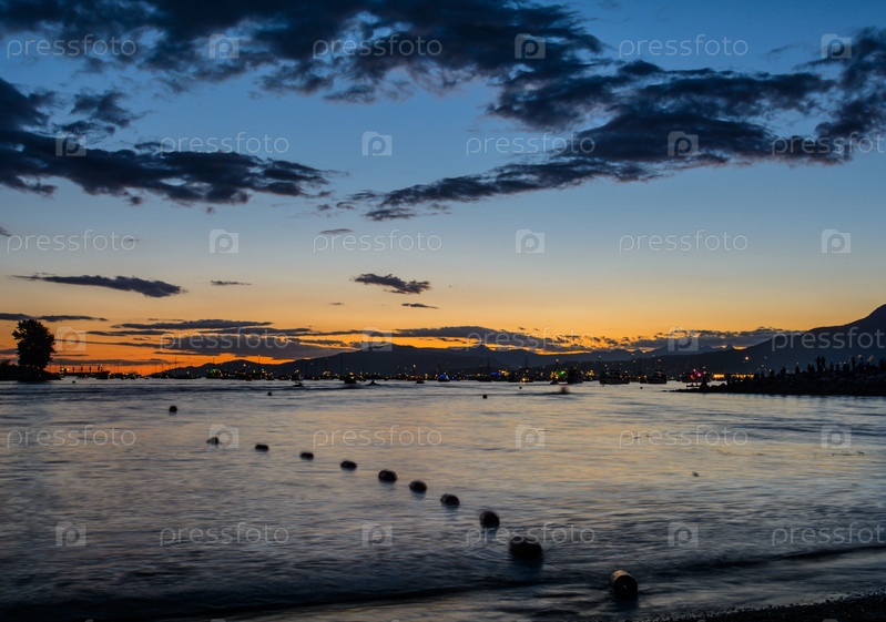 Катера и яхты в бухте на закате