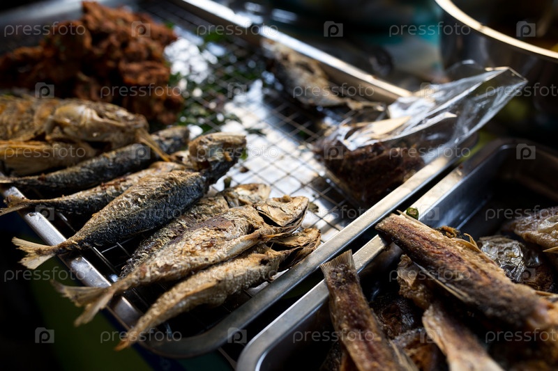Жареная рыба на рынке