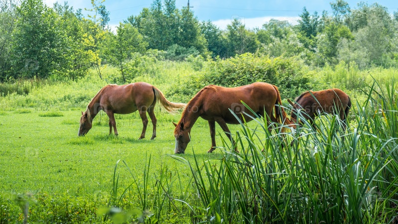 Коричневые лошади на пастбище