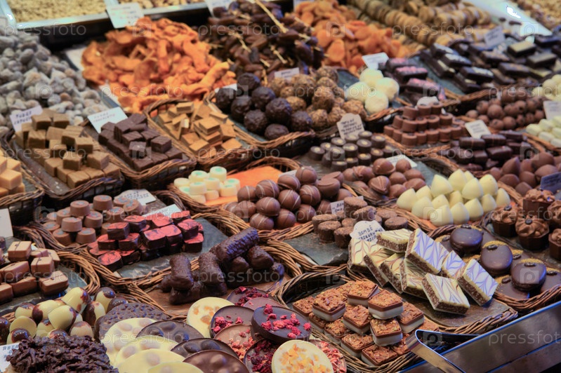 Ряды шоколадных конфет