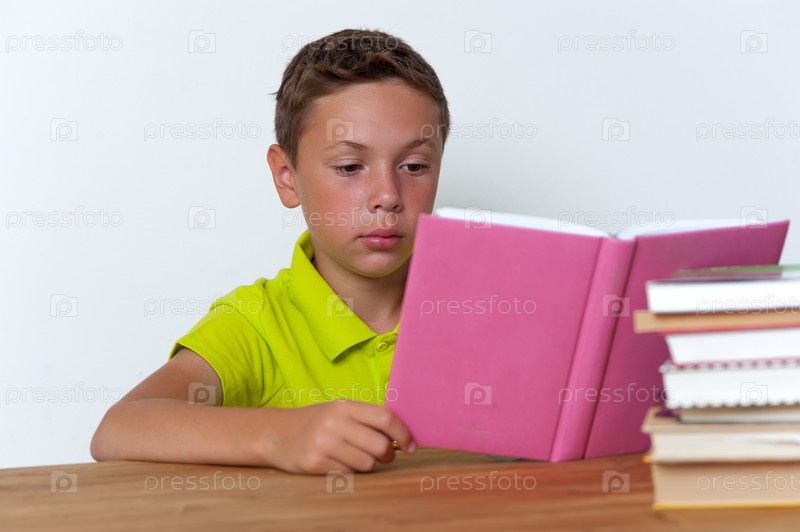 Задумчивый мальчик читает книгу