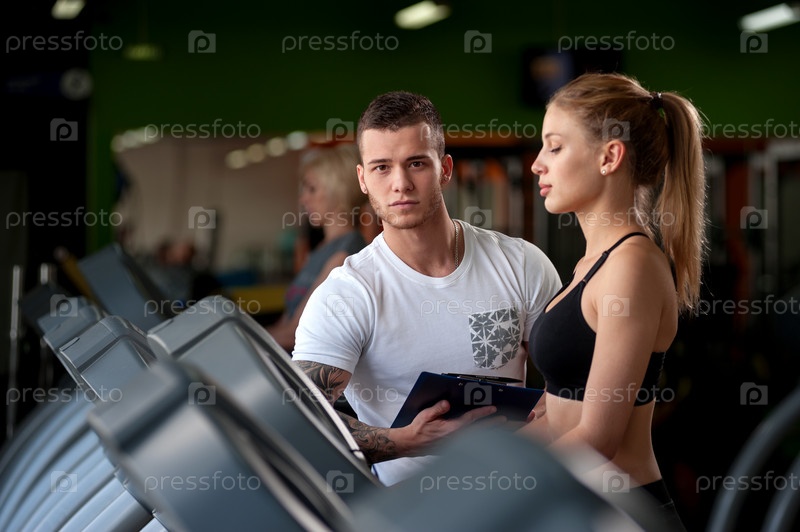 Фитнес-тренер с женщиной-клиентом
