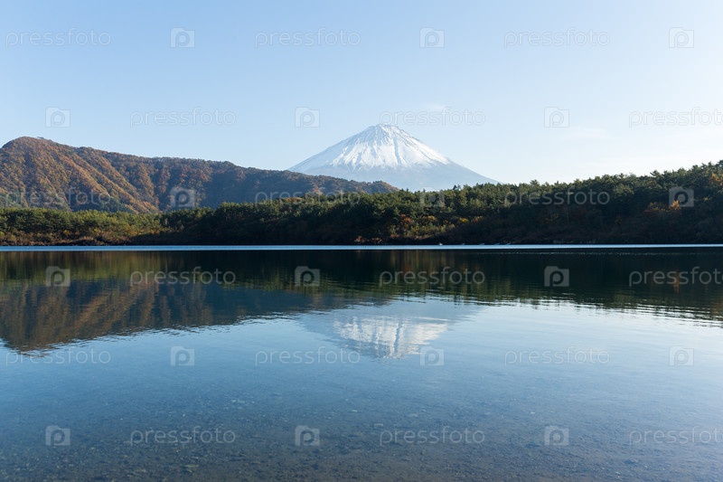 Гора Фудзи с отражением на озере Сайко
