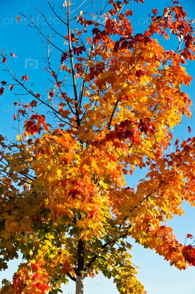 Красивое дерево с красочными осенними листьями