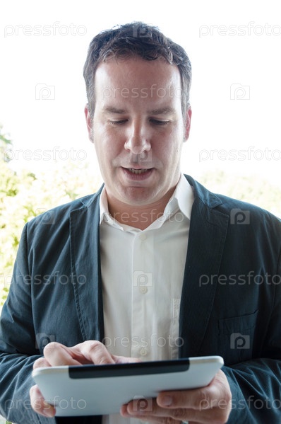 Бизнесмен с планшетным компьютером в руках