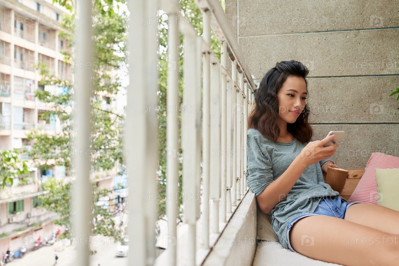 Вьетнамская девушка с чаем на балконе