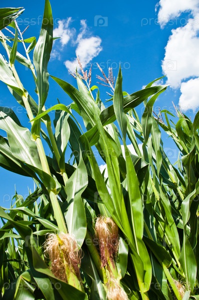 Зеленая сахарная кукуруза на фоне неба