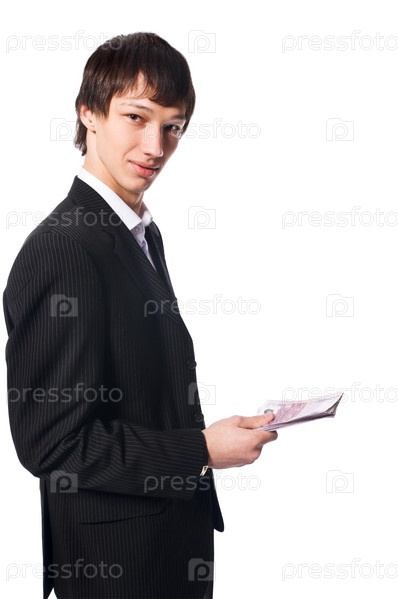 Молодой человек с пачкой денег в руках