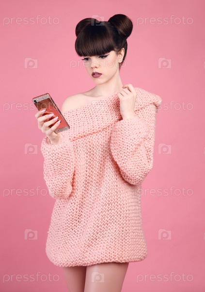 Красивая стильная девушка со смартфоном