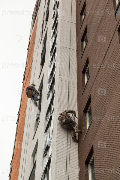 Промышленные альпинисты лезут на фасаде здания