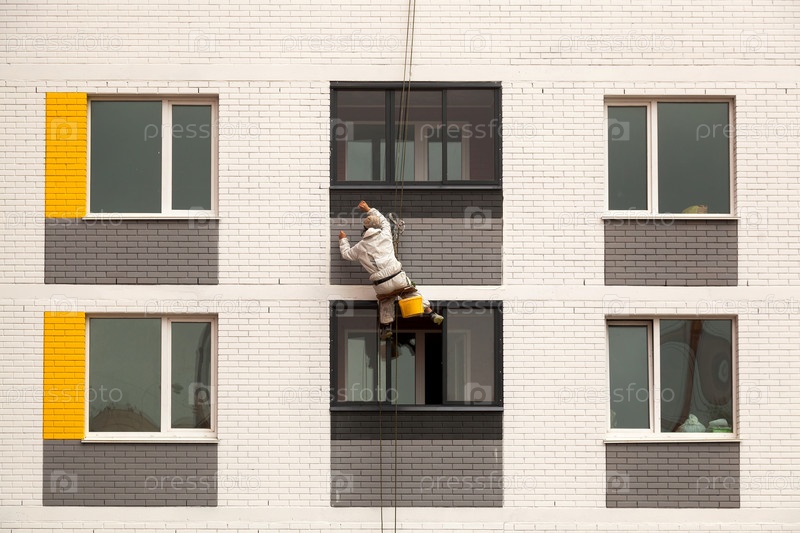 Промышленные альпинисты на фасаде здания