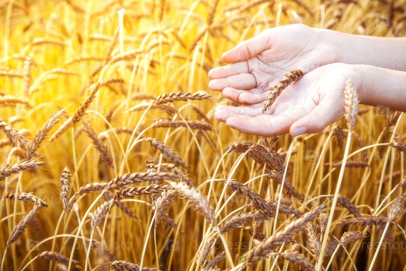 Женщина прикасается к пшенице