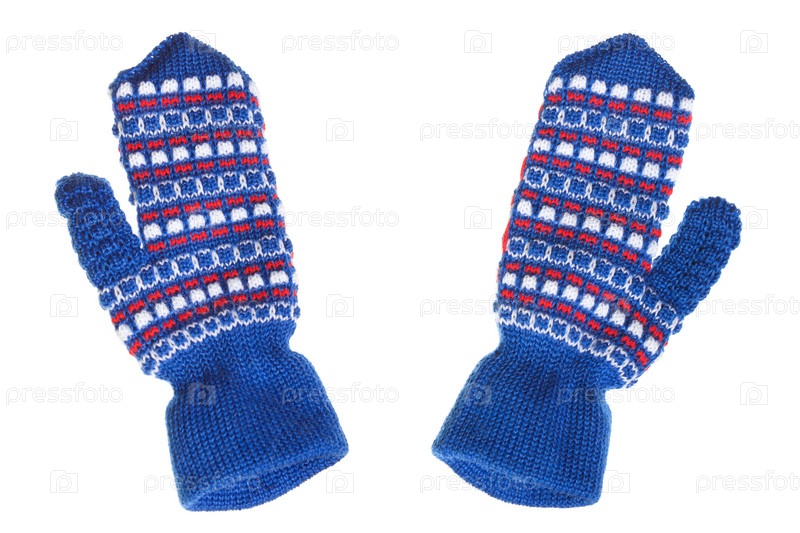 Пара детских вязаных варежек