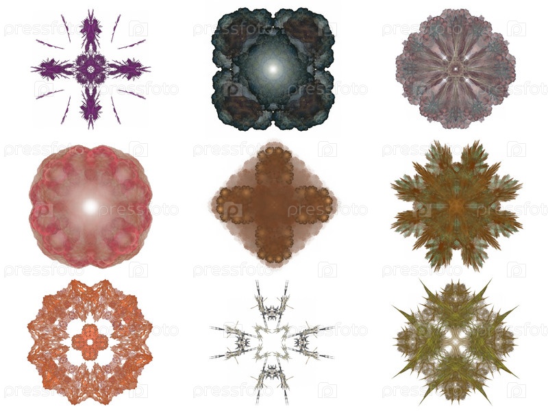 Набор различных цветных абстрактных фракталов