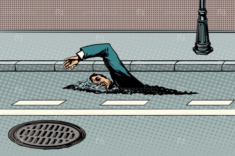 Бизнесмен плывущий на дороге, как в реке
