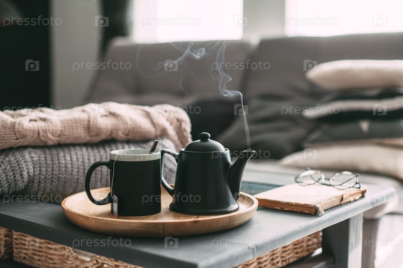 Горячий чай в утреннем солнечном свете