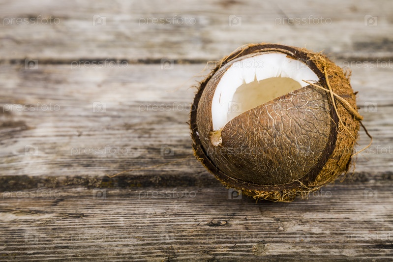 Кокос на деревянном столе