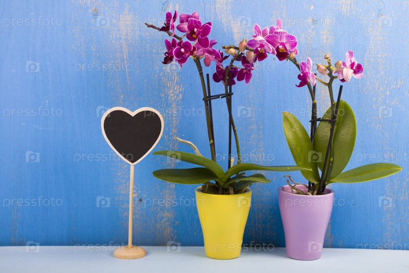 Две орхидеи в горшках и сердце