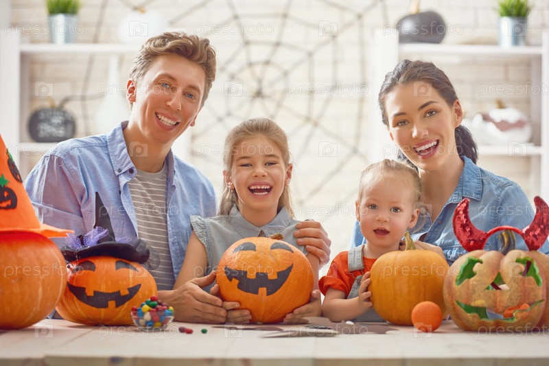 Семья готовится к Хэллоуину