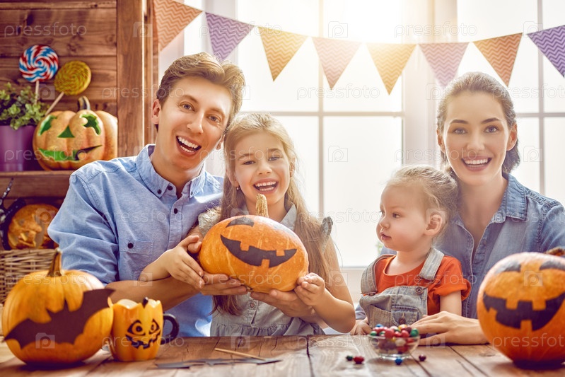 Семья готовится к Хэллоуину