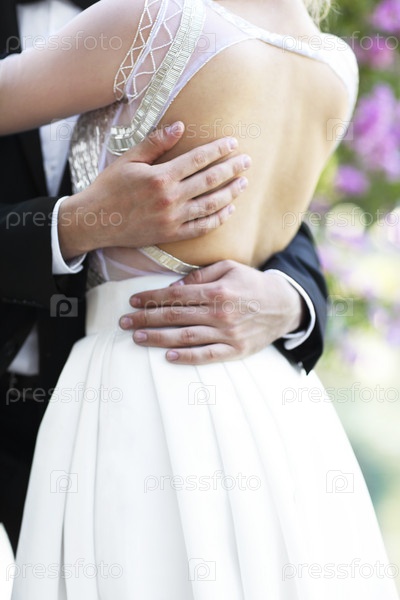 Молодые жених и невеста на открытом воздухе