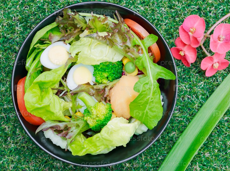 Микс-салат с перепелиными яйцами