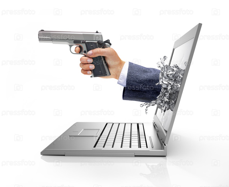 Рука с пистолетом, высунутая из экрана компьютера