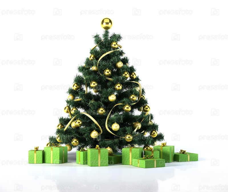 Рождественская елка с золотыми шарами и украшением