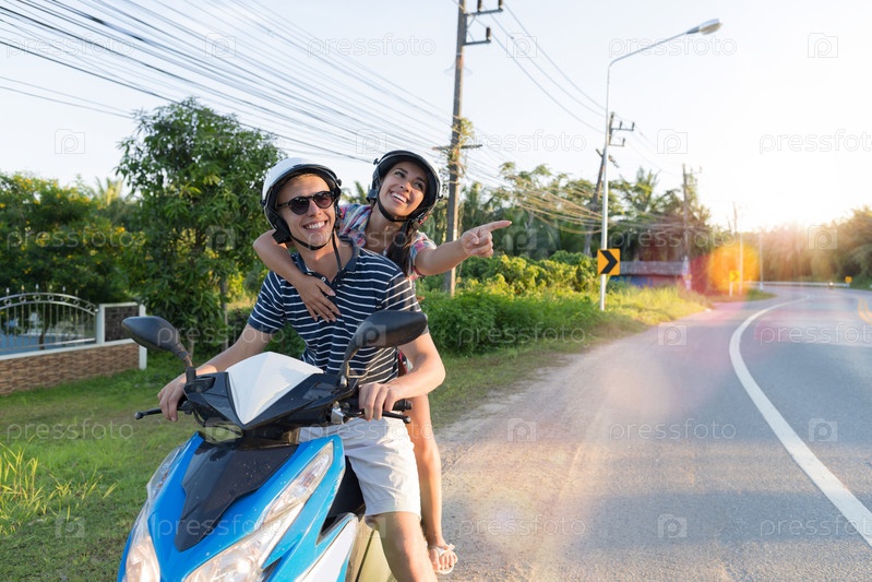 Счастливая пара на мотоцикле
