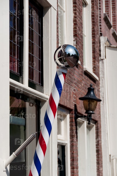 Полосатый шест у фасада здания